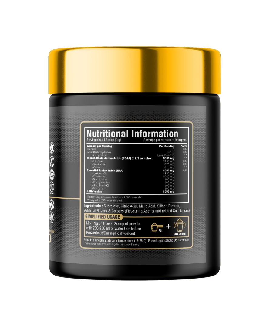 Mix 1 scoop [9g] with 200ml of water shaker or blender. Consume 1 serving between meals and another immediately post exercise or physical activity