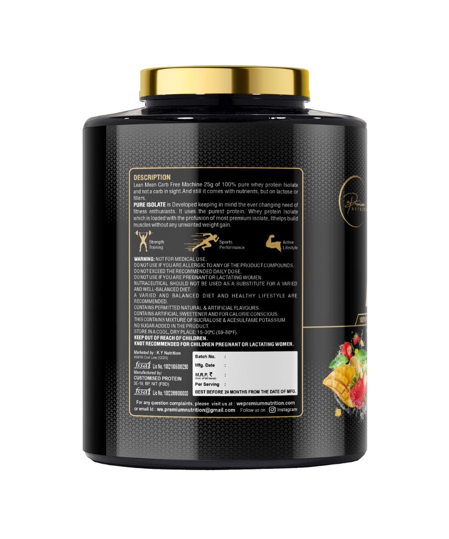 WE Premium Nutrition Pure Isolate is power packed with 25 grams of Pure Isolate Protein and concentrate, loaded with essential amino acids. It is a quick absorbing protein blend which allows your body to digest the nutrients and helps to promote lean muscle gains.